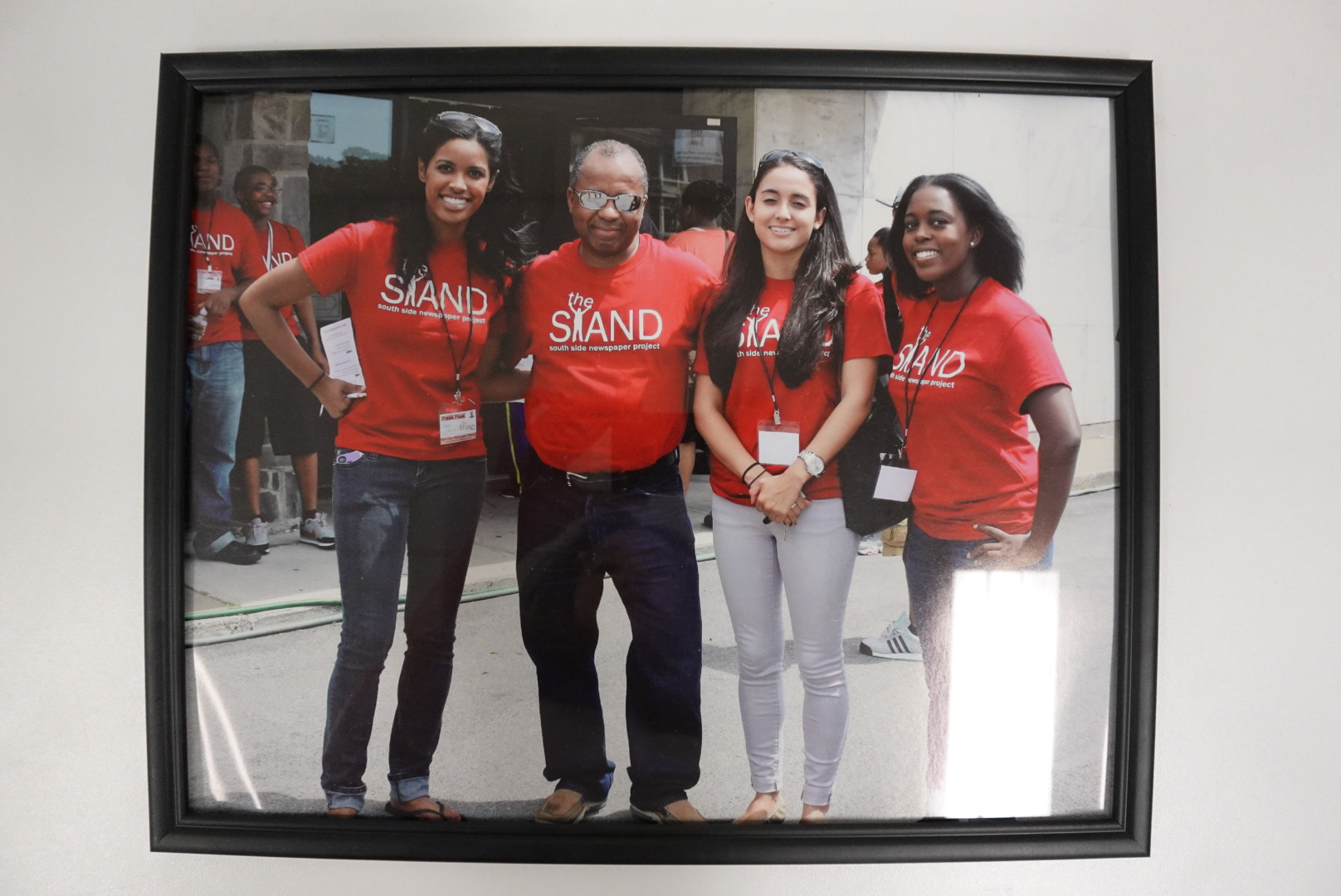 A photo of Cobb with colleagues from "The Stand" still hangs in his Newhouse office today. (Photo: Nicole Cheah)
